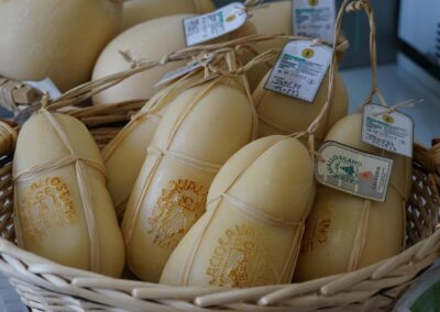 L’azienda, nata nel 1987, sorge nel verde di un altopiano a 1.000 metri di altitudine, in un luogo famoso per le sue sorgenti d’acqua, ed è uno dei più noti indirizzi di riferimento per il caciocavallo silano Dop, formaggio a pasta dura e filata di differenti pezzature, ottenuto dal latte del proprio allevamento di vacche brune, lavorato e trasformato nel giro di 24 ore.